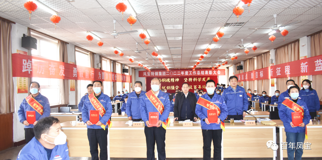 2023-01-14 administrator 凤宝特钢集团2022年度总结表彰大会隆重召开 2023年1月11日,河南凤宝特钢有限公司2022年度工作总结表彰大会隆重召开。公司全体中层以上干部、劳模、受表彰单位代表、先进个人代表等参加。会议由李静敏总经理主持,李广元董事长出席并作重要讲话。李静敏总经理作了题为《踔厉奋进勇毅前行,乘风破浪正当其时》的公司2022年度工作总结报告,回顾总结了一年来取得的主要成绩,指出了存在的不足。围绕2023年度目标和工作思路,提出了以专业化、职业化为目标,加快高素质人才的引进和使用;持续巩固研发体系,靠产品创新提升企业核心竞争力;持续抓好安全环保体系建设,切实提高安全环保履职能力;全面推进精准生产和精益管理;围绕市场精耕细作,认真做好经营工作;推进全面预算管理高质量运行,切实防范经营风险等措施,强调了人才和技术创新工作。在听取集团公司全面预算管理工作汇报、总结报告、各线领导2023年工作思路汇报,为劳模先进颁奖后,李广元董事长对总结报告和一年来各方面取得的成绩作了高度评价。李广元董事长指出,2022年是不平凡的一年,疫情、俄乌战争、世界经济、国内经济都对市场影响非常大,在此情况下能做出这么多成绩的确不容易。感谢参会的各位领导、专家,感谢为凤宝发展做出贡献的全体员工,感谢多年来关心支持凤宝发展的各级领导和社会各界朋友!针对工作总结报告和企业发展目标,李广元董事长提出了要求。会议强调,成绩属于过去,未来充满希望。新的一年,公司将继续秉承“发展企业、富裕员工、回报社会”的企业宗旨,全面贯彻“安全第一、环保优先、质量至上、以人为本”的总方针,紧紧围绕建设“新时代绿色特钢强企”“世界知名无缝钢管企业”和“打造车轴世界品牌”三大目标,以先进为榜样,守正创新,踔厉奋发,勇毅前行,努力促进2023年各项工作再上新台阶!